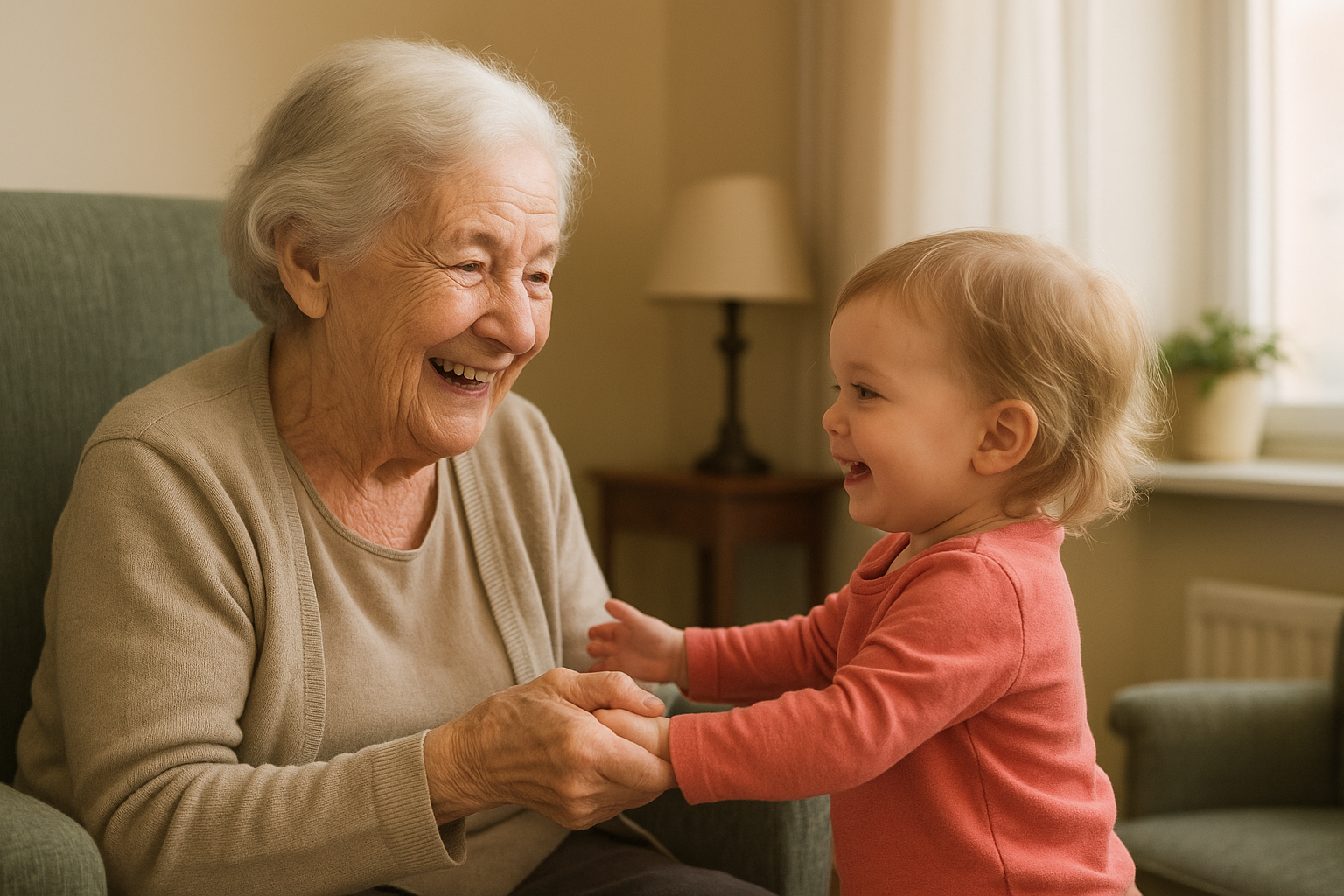 Besonders bewegend war es, zu sehen, wie meine Tochter bei Besuchen im Pflegeheim Freude, Lachen und Leichtigkeit verbreitet hat – fast so, als wäre ihre Lebensenergie ansteckend. Daraus entstand mein Wunsch, solche Begegnungen bewusst zu ermöglichen: Kinder und ältere Menschen zusammenzubringen, um in einfachen Kreisen mit Liedern, Spielen und sanften Berührungsimpulsen Nähe, Freude und Lebendigkeit zu teilen. Dabei geht es nicht um „Pflicht-Berührungen“, sondern um Begegnungen, die ganz freiwillig entstehen dürfen. Kinder, Eltern und ältere Menschen erleben diese Momente als Geschenk.